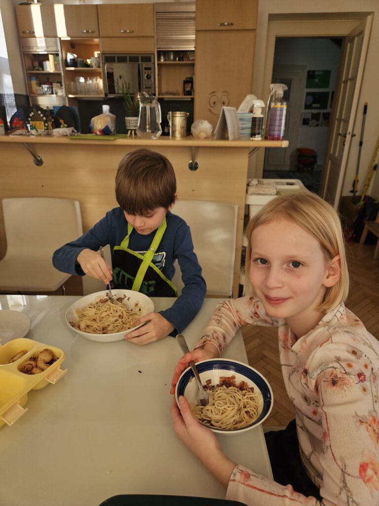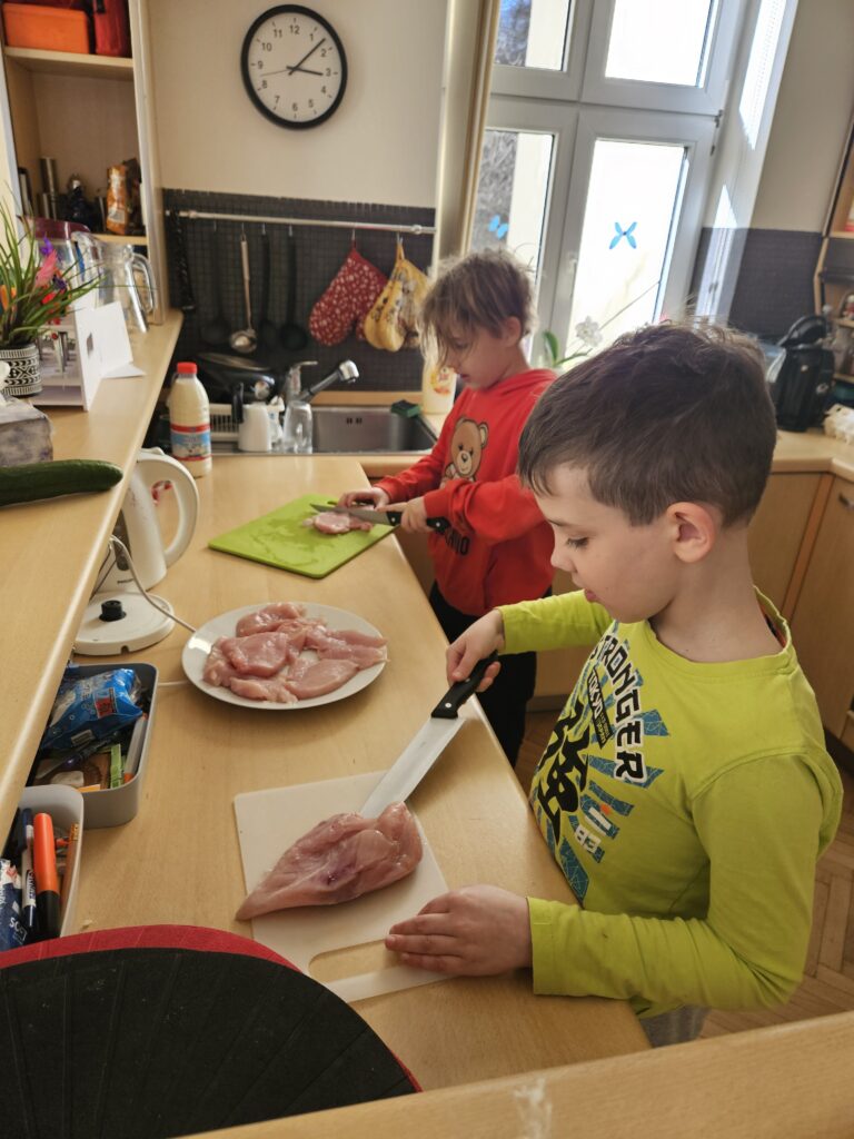 Každou středu odpoledne u nás, v Domácí škole Praha, probíhá kroužek vaření. Děti vaří, pečou a hlavně ochutnávají